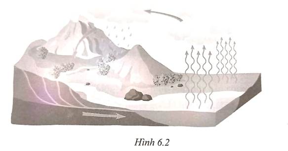 Bài 6.10 trang 17 sách bài tập KHTN 6: Hình 6.2 minh họa chu trình của nước trong tự nhiên. Theo em, có những quá trình chuyển thể nào của nước diễn ra trong chu trình này?
