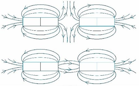 Bài 19.8 trang 53 SBT Khoa học tự nhiên 7: Hãy xác định cực của nam châm trong hình dưới đây.