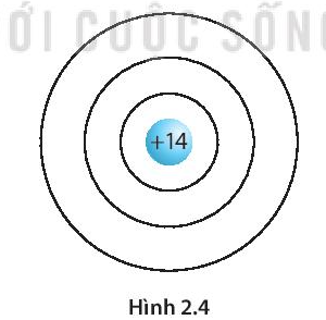 Trong hạt nhân của nguyên tố silicon có 14 proton, vỏ nguyên tử silicon có 3 lớp electron. Hãy hoàn thiện Hình 2.4 để mô tả mô hình một nguyên tử silicon.