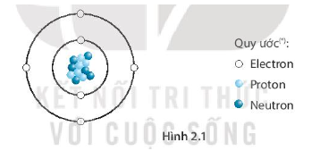 Quan sát Hình 2.1 xác định được, nguyên tử carbon có 6 electron, 6 proton và 6 neutron.