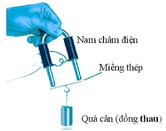 Bài 21.7 trang 57 SBT Khoa học tự nhiên 7: Một học sinh thực hiện thí nghiệm được mô tả như hình dưới dây. Học sinh này kết luận nam châm điện có thể hút được quả cân bằng đồng thau. Theo em, kết luận đó có đúng không? Giải thích vì sao.