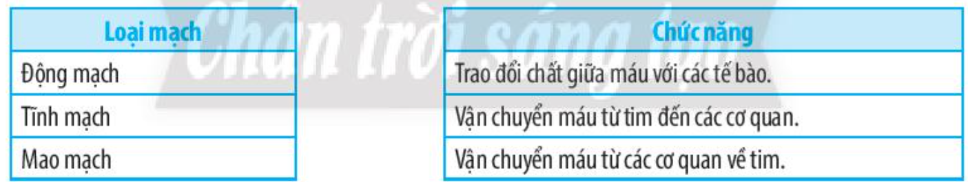 Bài 30.5 trang 74 SBT Khoa học tự nhiên 7: Hãy ghép chức năng của các loại mạch máu trong hệ tuần hoàn ở người.