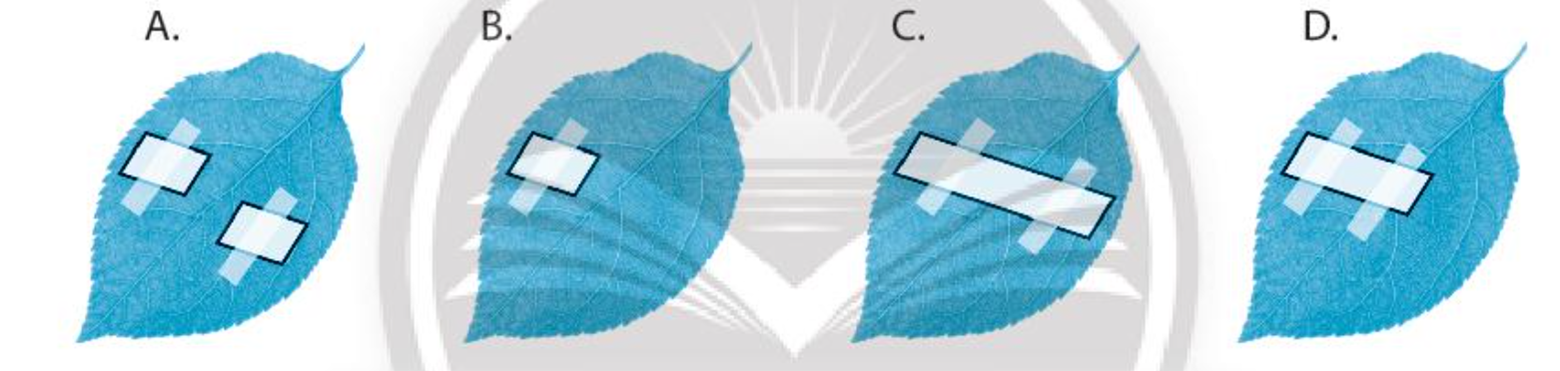 Bài 31.3 trang 77 SBT Khoa học tự nhiên 7: Để quan sát rõ nhất sự đổi màu của giấy thấm được tẩm CoCl2, cách dán giấy thấm nào sau đây là đúng?