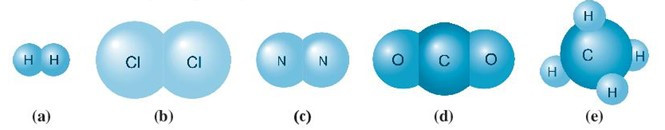 + Hình (b): Phân tử được cấu tạo từ 2 nguyên tử Cl.