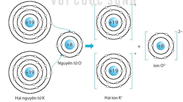 c) Sơ đồ tạo thành liên kết ion trong phân tử potassium oxide (K2O):