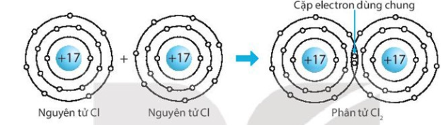 a) Biểu diễn sự hình thành liên kết cộng hóa trị trong phân tử chlorine, Cl2: