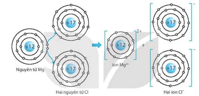 a) Vẽ sơ đồ mô tả sự hình thành liên kết ion trong hợp chất MgCl2 từ các nguyên tử Mg và Cl (xem hình 6.2, trang 37 SGK). Cho biết số proton trong hạt nhân của Mg là 12 và của Cl là 17.