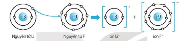 a) Sơ đồ tạo thành liên kết ion trong phân tử lithium fluoride (LiF):