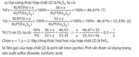 Trong hợp chất (Z) có 46,67% iron, còn lại là sulfur.