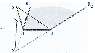Để có thể quan sát được ảnh của bóng đèn ta cần đặt mắt trong vùng giới hạn của hai tia phản xạ IR1 và JR2.