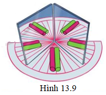 Đặt hai gương vuông góc với thước chia độ sao cho hai gương hợp với nhau một góc nhọn. Đặt ống hút trong góc tạo bởi hai gương (hình 13.9). Thay đổi góc giữa các gương và đếm số ảnh được tạo bởi hệ gương rồi ghi kết quả như bảng dưới đây.