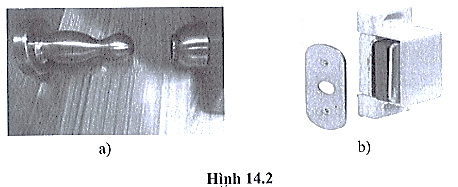 Bài 14.5 trang 34 SBT Khoa học tự nhiên 7: Hình 14.2a là dụng cụ giữ cánh cửa ra vào (để giữ cánh cửa khi mở ra thì không bị gió thổi làm cửa đóng lại), hình 14.2b là dụng cụ giữ cánh cửa tủ (để khi khép cánh tủ lại, cánh tủ không bị bật ra). Chúng đều có hai bộ phận rời nhau. Theo em, hai bộ phận này được làm từ vật liệu gì? Đưa ra các cách kiểm tra xem dự đoán của em đúng hay sai. Trao đổi với các bạn trong nhóm xem cách kiểm tra nào đơn giản hơn.