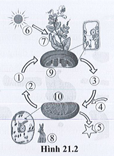 Bài 21.10 trang 48 sách bài tập Khoa học tự nhiên 7: Chú thích các số từ 1 đến 10 trong hình 21.2 về mối quan hệ giữa quang hợp và hô hấp.