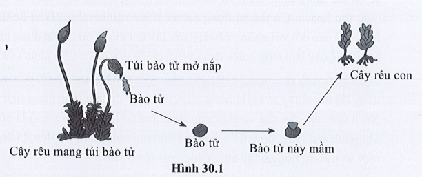 Bài 30.5 trang 65 SBT Khoa học tự nhiên 7: Quan sát hình 30.1 và kể tên các giai đoạn sinh trưởng và phát triển của cây rêu.