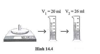 b) Từ kết quả thí nghiệm ở hình 14.4, xác định khối lượng riêng của vật rắn đó theo đơn vị g/ml.