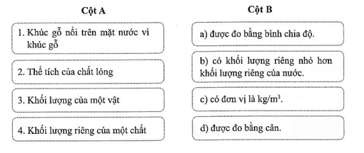 Bài 14.9 trang 31 Sách bài tập KHTN 8: a) Tính khối lượng riêng của một miếng gỗ có khối lượng 9,70 g, biết thể tích của nó là 10,0 cm3.