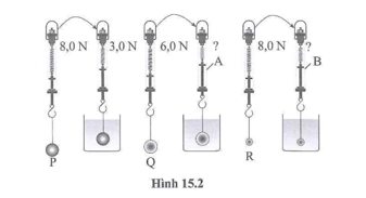Số chỉ của lực kế B chỉ hiệu của trọng lượng và lực đẩy Acsimet tác dụng lên vật R → Số chỉ của lực kế B là: 8 – 2,5 = 5,5 (N).