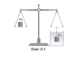 Bài 15.8 trang 34 Sách bài tập KHTN 8: Có hai vật có khối lượng m1 và m2. Vật m1 được đặt ở đĩa cân bên trái, vật m2 được treo vào đĩa cân bên phải. Lúc đầu, cân thăng bằng. Sau đó, người ta nhúng vật m2 ngập hoàn toàn trong chất lỏng (hình 15.3). Cân còn thăng bằng nữa hay không? Nếu không thăng bằng thì cân sẽ lệch về phía nào? Vì sao?