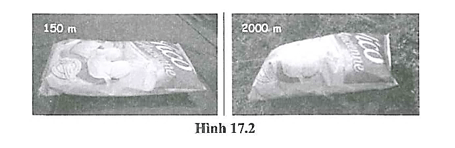 Bài 17.5 trang 36 Sách bài tập KHTN 8: Quan sát thể tích của gói bánh khi một người leo núi cầm theo ở độ cao 150 m và ở độ cao 2 000 m so với mực nước biển (hình 17.2). Vì sao lại có sự thay đổi thể tích như vậy?