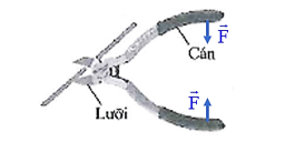 Hai lực được vẽ tại cán kìm, các mũi tên hướng vào khoảng giữa hai cán kìm.