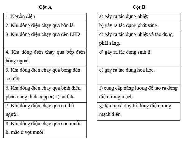 Bài 22.7 trang 45 Sách bài tập KHTN 8: Ghép nội dung của cột A với nội dung của cột B cho phù hợp