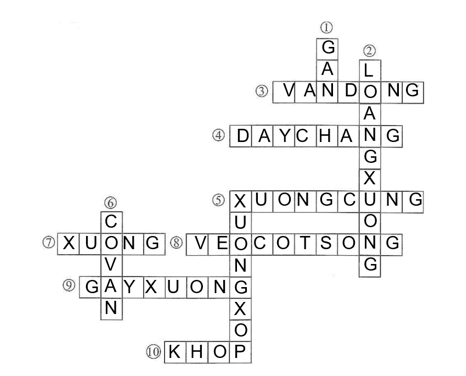 Bài 28.6 trang 55 Sách bài tập KHTN 8: Dựa vào gợi ý dưới đây, hãy tìm ô chữ hàng ngang và hàng dọc (chữ cái điều là tiếng Việt không dấu, ví dụ: COVAN).