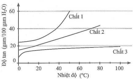 Nhìn vào đồ thị ta thấy: Ở 20oC, độ tan của chất 1 gấp đôi chất 3.