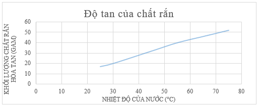 Bài 6.7 trang 18 Sách bài tập KHTN 8: Để kiểm tra độ tan của một chất rắn chưa biết một nhóm học sinh đã cho chất rắn đó vào 200 ml nước. Kết quả cho thấy độ tan của chất rắn thay đổi ở các nhiệt độ khác nhau của nước. Cụ thể như sau: