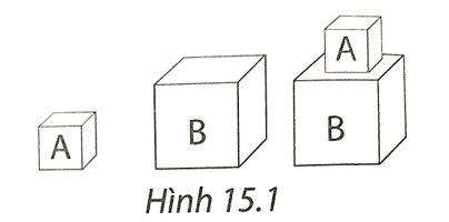 Giả sử khối A có cạnh là a thì khối B có cạnh là 2a.