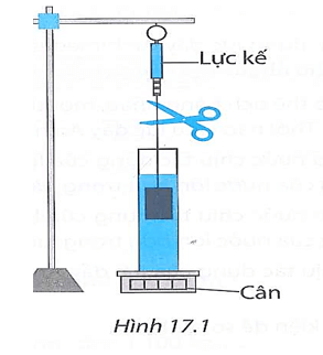 Bài 17.9 trang 50 Sách bài tập KHTN 8: Treo khối sắt vào lực kế và từ từ nhúng vật ngập vào trong ống trụ chứa nước đặt trên một cái cân (Hình 17.1).