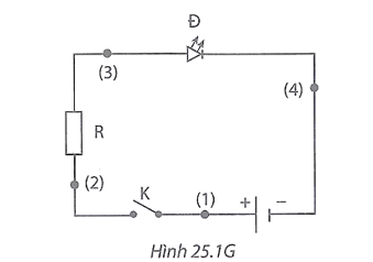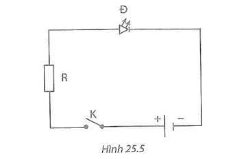 Bài 25.6 trang 68 Sách bài tập KHTN 8: Để đo cường độ dòng điện qua điốt phát quang Đ trong hình 25.5, có thể mắc ampe kế vào những vị trí nào? Vẽ sơ đồ mạch điện tương ứng với mỗi trường hợp.