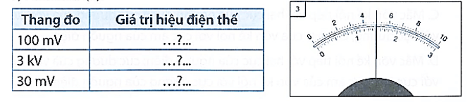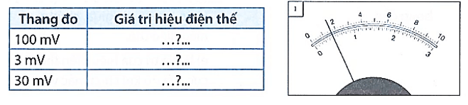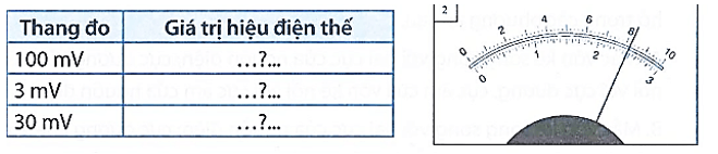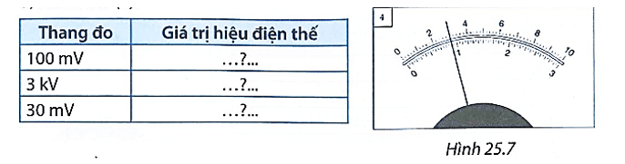 Bài 25.8 trang 69 Sách bài tập KHTN 8: Hình 25.7 (1, 2, 3, 4) là vị trí các kim trên vôn kế. Điền giá trị hiệu điện thế đo được vào bảng số liệu tương ứng với các thang đo khác nhau: