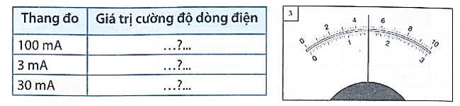 Bài 25.7 trang 68 Sách bài tập KHTN 8: Hình 25.6 (1, 2, 3, 4) là vị trí các kim trên ampe kế. Điền giá trị cường độ vào bảng số liệu tương ứng với các thang đo khác nhau: