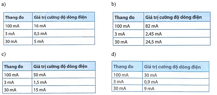 Kim chỉ thị ở khoảng thứ 16 thì cường độ dòng điện là 16 . 0,2 = 3,2 A.