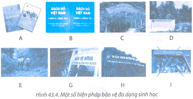 Bài 43.7 trang 106 Sách bài tập KHTN 8: Hãy nêu các nhóm biện pháp bảo vệ đa dạng sinh học. Xác định các hình ảnh trong Hình 43.4 tương ứng với từng nhóm biện pháp nói trên. Ở địa phương nơi em sinh sống, các biện pháp nào đã được sử dụng để bảo vệ đa dạng sinh học?