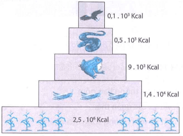 Trong hệ sinh thái, khi năng lượng truyền qua các bậc dinh dưỡng sẽ giảm xuống vì ở mỗi bậc dinh dưỡng có sự thất thoát năng lượng do sinh vật sử dụng và trả lại môi trường dưới dạng nhiệt.