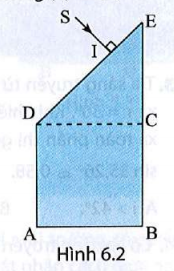 Một khối thuỷ tinh có tiết diện thẳng như Hình Bài 6.2 đặt trong không khí, ABCD là hình vuông, CDE là tam giác vuông cân. Trong mặt phẳng của tiết diện thẳng, chiếu một chùm tia sáng đơn sắc hẹp SI vuông góc với DE (IE < ID). Biết chiết suất của thuỷ tinh là n = 1,5. Vẽ đường đi của tia sáng trong khối thuỷ tinh. Phương của tia ló hợp với pháp tuyến của mặt mà tia sáng ló ra một góc bằng bao nhiêu độ?