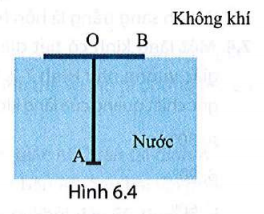 Một cái đinh được cắm vuông góc vào tâm O của một tấm gỗ hình tròn có bán kính R = 0,05 m. Tấm gỗ được thả nổi trên mặt thoáng của một chậu nước (Hình Bài 6.4). Đầu A của đinh ở trong nước. Cho chiết suất của nước là n =