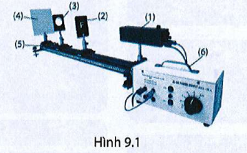 Hình Bài 9.1 mô tả bộ dụng cụ thí nghiệm đo tiêu cự của Thực hành đo tiêu cự của thấu kính hội tụ hội tụ.