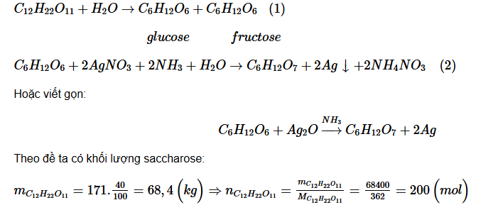 nAg = 2.nC6H12O6.H = 4.nC12H22O11.H ⇒ mAg = nAg.MAg = 4.200.40%.108=34560 (g)