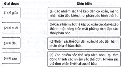 Câu 43.4 trang 116 Sách bài tập KHTN 9: Giai đoạn nào sau đây không thuộc quá trình nguyên phân?