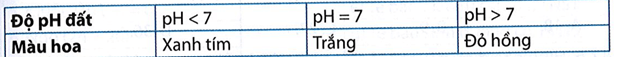 Bài 41.8 trang 109 Sách bài tập KHTN 9: Một người làm vườn đã cắt các cành của một cây cẩm tú cầu sau đó đem giâm mỗi cành đã cắt vào một chậu (chậu A, B, C) chứa đất có độ pH khác nhau, các chế độ chăm sóc giống nhau ở cả ba chậu cây. Kết quả thu được về màu hoa ở ba cây thí nghiệm được mô tả trong bảng sau