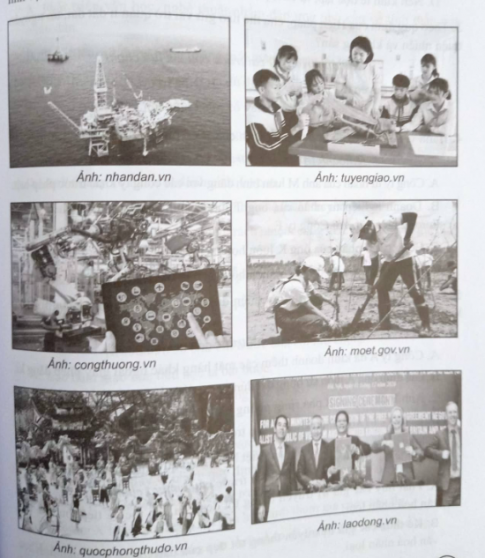 Bài tập 1 trang 105 SBT Kinh tế pháp luật 10: Quan sát và cho biết mỗi hình ảnh dưới đây thể hiện quy định của Hiến pháp về lĩnh vực nào trong đời sống. Vì sao?