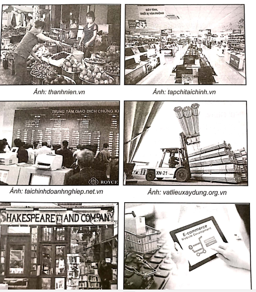 Câu 1 trang 15 SBT Kinh tế pháp luật 10: Căn cứ vào những cách phân loại thị trường đã học, em hãy quan sát các hình ảnh dưới đây và cho biết hình ảnh đó mô tả loại thị trường nào. (Có thể có nhiều phương án trả lời cho một hình ảnh)