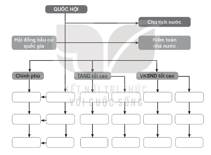 Bài tập 1 trang 58 SBT Kinh tế pháp luật 10: Em hãy hoàn thiện Sơ đồ cấu trúc bộ máy nhà nước Cộng hoà xã hội chủ nghĩa Việt Nam theo Hiến pháp năm 2013.