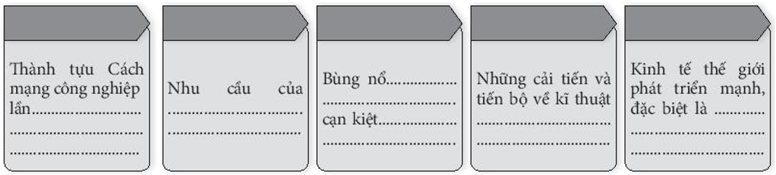Bài tập 2 trang 71 SBT Lịch sử 10: Điền vào chỗ trống các nội dung liên quan đến bối cảnh ra đời các cuộc cách mạng công nghiệp thời hiện đại.