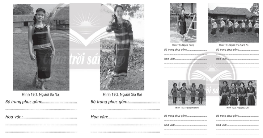 Bài tập 3 trang 124 SBT Lịch sử 10: Tìm hiểu và cho biết nét đặc trưng về trang phục của một số dân tộc dưới đây: