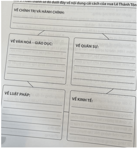 Câu 3 trang 46 SBT Lịch Sử 11: Hoàn thành sơ đồ dưới đây về nội dung cải cách của vua Lê Thánh Tông.