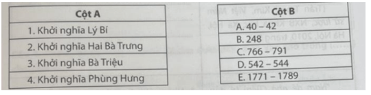 Câu 2 trang 35 SBT Lịch Sử 11: Nối các sự kiện ở cột A với thời gian ở cột B cho phù hợp.