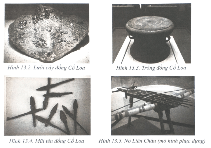 - Hình 13.4 và hình 13.5: Việc chế tạo ra nỏ Liên Châu và mũi tên đồng là những thành tựu đặc sắc về kĩ thuật quân sự.